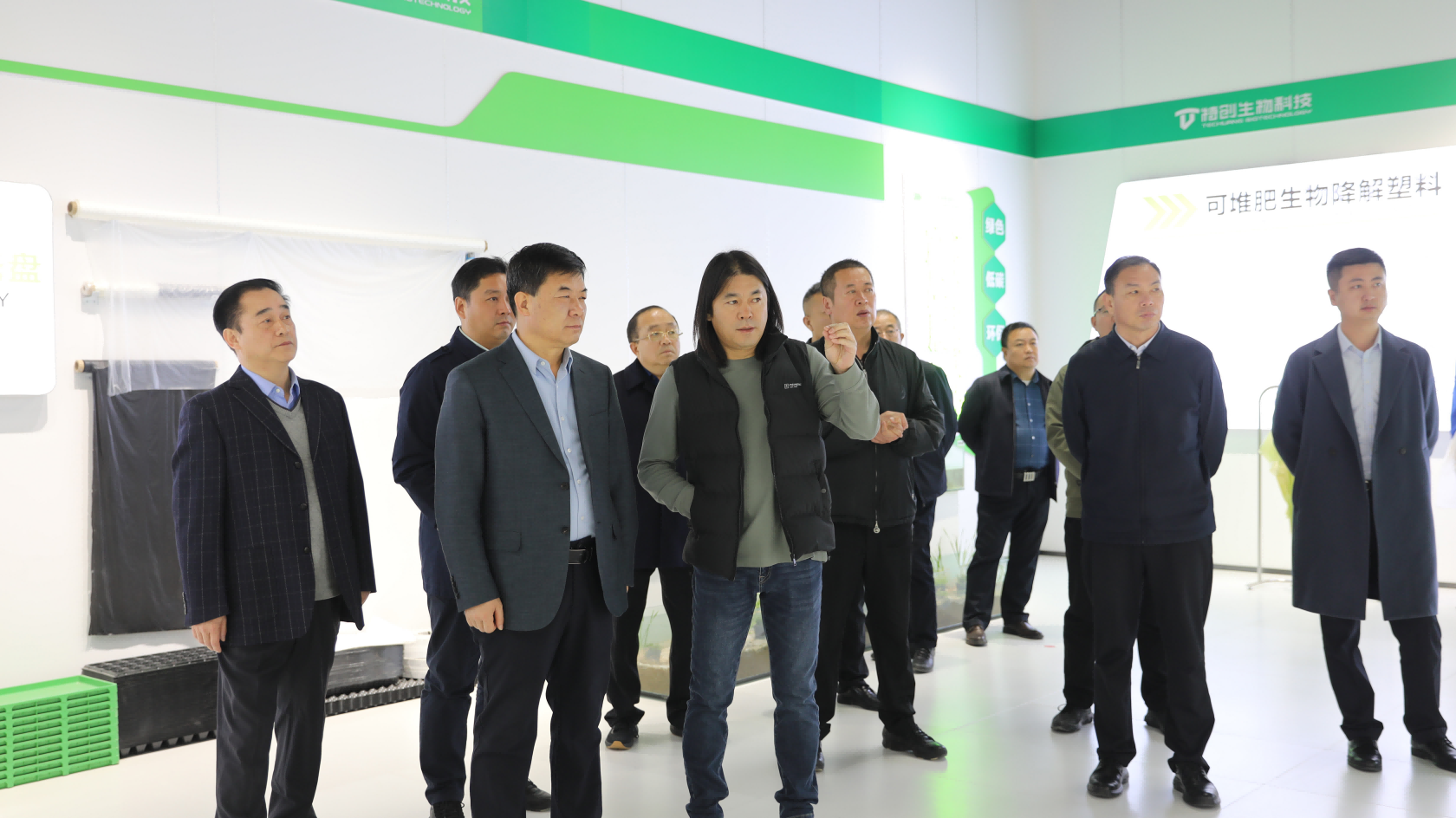 趙書記一行先后參觀了河南特創生物基可降解產業園產品展廳、研發中心,直觀了解了從原材料改性造粒、吹膜、印刷,再到公司生產的膜袋類、一次性餐具類、農業類、紡織服裝類、醫療衛生類等五大領域,八大系列產品,展示了全生物降解塑料的廣泛應用領域,以及特創生物豐富的產品系列。參觀過程中,趙同慶書記詳細詢問了公司產品的設計理念、材料選用以及生產工藝等,并對公司在創新方面的努力給予了高度評價。